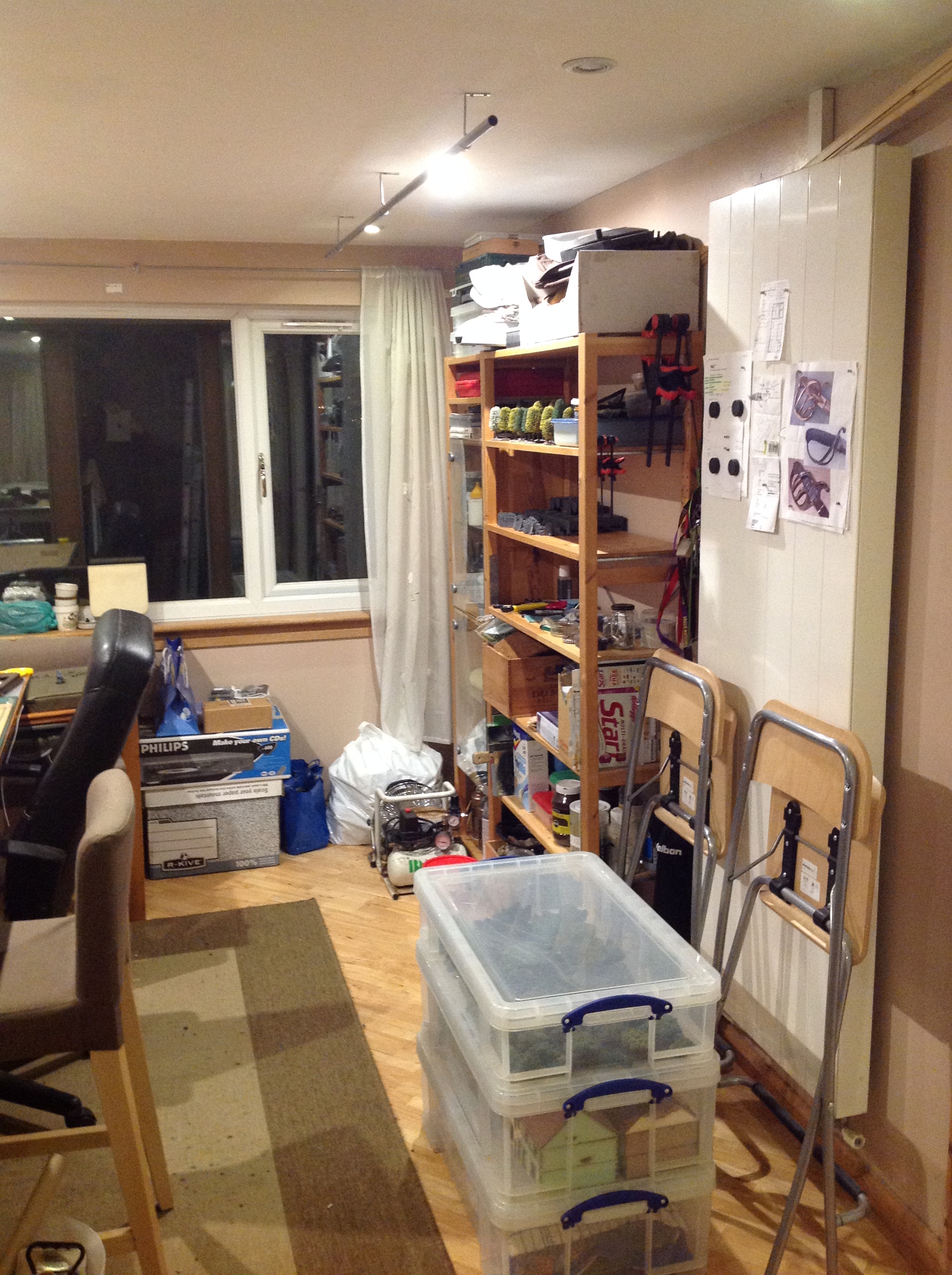 Now have floor space woo! but still need to clear out some more chairs, terrain, boxes, etc.