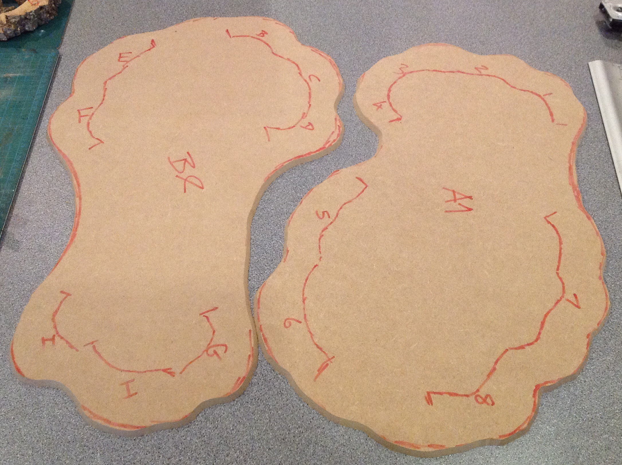 Cut out bases – As you can see you don’t need to be too accurate at this stage as there is still plenty of flexibility to adjust to it. Note how I’ve cut outwards from the line, this makes the drawn on side the upper side.