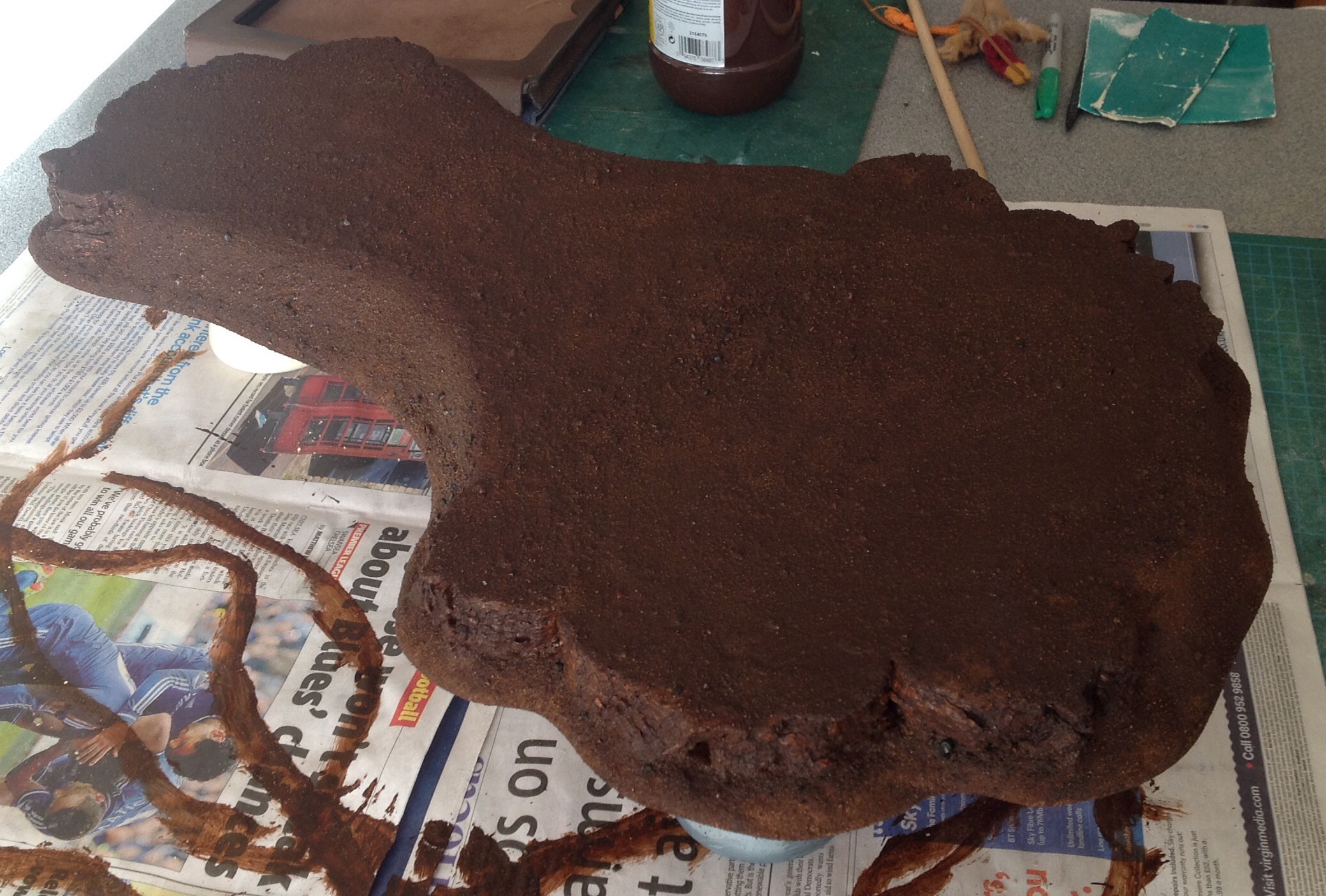Undercoat – Now if your doing grassy hills you’ll want to undercoat a nice muddy poo brown (because earth is brown and the green grass colour will come from the flock), or as artists call it ‘burnt umber’. Also worth noting is that artists paint tend to be very pigment heavy and stiff, this is good for us cheapskates as water and PVA are cheap. I tend to first add one part PVA to two or three parts paint then dilute with water till it’s gets to a usable gloopyness. This thinning of the paint tend to lighten it slightly but makes little difference to its coverage ;)