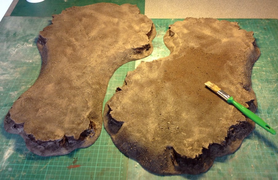 The ‘soil’/base colour gets it’s first drybrush. As I said previously I mix my paints but I originally mixed them to match old GW colours – Scorched Brown, Graveyard Earth, Kommando Khaki/Bleached Bone.